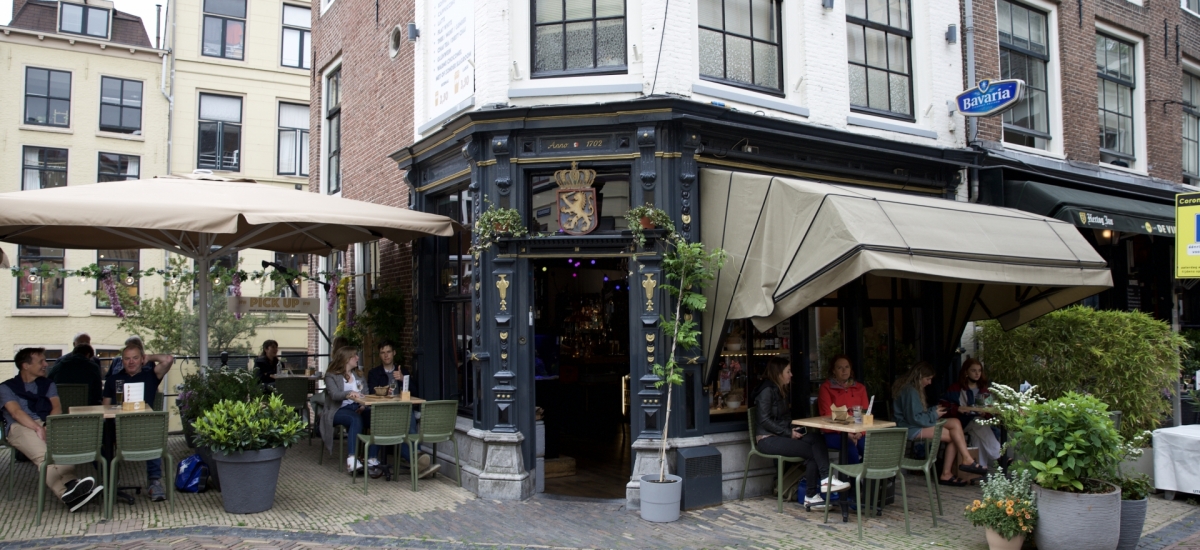 Bijna verborgen tussen de vele horeca op 't Wed zit een klein kroegje op de hoek. Uiteraard wordt weer veelvuldig geclaimd dat het de kleinste kroeg van Utrecht is. Het terras aan de Gracht is uniek in zijn ligging. Nergens anders zit je bovenaan de gracht, en heb je toch fijn uitzicht op het water. Een veelgehoorde klacht is dat de bediening chagrijnig is. Dit is echter een misverstand. Hoewel het personeel meestal niet op een glimlach is te betrappen, zijn ze wel altijd vriendelijk en kortdaad.